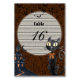 Crea una atmósfera inquietantemente hermosa con esta tarjeta de número de mesa personalizada de Halloween, que presenta un gato negro de ojos grandes con ojos amarillos brillantes, una casa embrujada caprichosa y murciélagos sutiles en lo alto. El cálido fondo naranja otoñal y las texturas vintage dan a este diseño un encanto acogedor y espeluznante, perfecto para eventos de temporada.