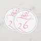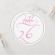 Ideal para recepciones de fiestas y bodas, esta tarjeta de número de mesa redonda 26 en negro y blanco con escritura caligráfica rosa es simple y sofisticada, y coordinará con muchos estilos diferentes de flores y decoración de boda.