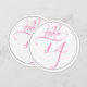 Ideales para fiestas y recepciones de boda, estas elegantes tarjetas de número de mesa redondo en negro y blanco con escritura caligráfica rosa son simples y sofisticadas, y se coordinarán con muchos estilos diferentes de flores y decoración de boda.