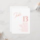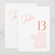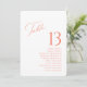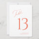 Eleva el décor de tu boda con esta elegante tarjeta a doble cara. Con un número de mesa en negrita en la parte frontal y los nombres de los invitados en la parte posterior, es perfecta para organizar el asiento con elegancia y facilidad. El diseño moderno de letra coral y serif añade un toque refinado, haciéndolo ideal para bodas, recepciones o eventos formales. Personaliza ambos lados para que coincidan con el estilo de tu día especial.