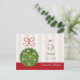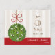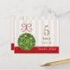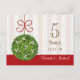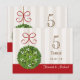 Cuidadas y fantasiosas, dulces y románticas cartas de boda de mistletoe con una bola de besos y un pomander adornadas con hojas de mistletote festivas, bayas blancas y adornos dorados colgados con un arco rojo. Un fondo de color crema rayado y polka punto y borde rojo completan esta elegante apariencia de vacaciones y/o temática de Navidades. Pintura © Chrissy H. Studios, LLC. Todos Los Derechos Reservados.