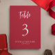Mejore su tablescape de boda de vacaciones con esta elegante tarjeta de número de tabla de Boda rojo de Navidades. Con un rico fondo rojo festivo acentuado por la tipografía en blanco o oro, esta carta aporta calidez y sofisticación a cada mesa. Delicados detalles de vacaciones, como sutiles poinsettias, hojas huecas o un toque de Relieve metalizado dorado, añaden un encanto de temporada al mismo tiempo que mantienen el diseño intemporal y la moda. Ideal para crear un aspecto cohesivo que capta la magia de un boda Navidad, estas tarjetas de número de mesa son funcionales y bellamente festivas.