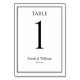 Una tarjeta de número de tabla clásica en blanco y negro que se puede personalizar con cualquier número de tabla. Los gráficos aparecen en ambos lados de esta tarjeta.