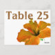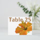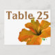 Las tarjetas de número de la tabla de flores tropical incluyen un hibisco de color coral y una fuente de tono de bronce. Personalice a ambas partes. El texto también puede ser personalizado o borrado.