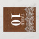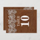 © 2013 Socialite Designs. Nuestra única tarjeta de número de mesa tiene un diseño de cuero y encaje, perfecto para cualquier fiesta o evento rústico o campestre. Una elegante combinación de elementos de diseño masculino y femenino para un evento romántico. TENGA EN CUENTA QUE EL LACE Y EL CUERO SON IMÁGENES QUE SE IMPRIMEN A LA INVITACIÓN Y QUE NO SON REALES. Si necesita AYUDA para personalizar o necesitar productos bodas adicionales con este diseño, póngase en contacto con Socialite Designs.