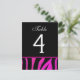 Tarjeta de número de tabla de Boda de cebra rosa y