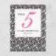 Diseño de tarjeta de Boda de tabla de patrones de cebra rosa por Elke Clarke ©2010. Personalizar con su información personal, fecha de boda y colores. Solicite uno por tabla con cada número de tabla pero aún así reciba el descuento por el número total solicitado.