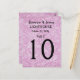 Asegúrese de que sus huéspedes encuentren su camino a sus mesas con estas elegantes tarjetas de damasco de boda. Personalice con sus nombres, fecha de boda y número de tabla. El tamaño es de 4,25 x 5,6", y tendrá un acabado brillante. Puede cambiar el color de fondo para un aspecto diferente. Necesitarás tarjetas de boda para que las tarjetas estén en posición vertical sobre tu mesa.