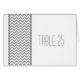 Moda y moderna tarjeta de número de tabla de borde Chevron con un sencillo borde de patrón de chevron en gris y blanco. Este diseño elegante marcará el tono de una boda elegante. Fácil de personalizar, simplemente agregue los números de tabla apropiados en el campo de texto proporcionado. Haga clic en "Personalizar" para encontrar más opciones de personalización.