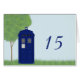 Extraña y divertida tarjeta de número de tabla de Bodas de la caja de la policía con una brillante caja de policía de época azul en un campo de bonito con un árbol en el fondo. Fácil de personalizar, simplemente añada el texto de su elección en los campos de texto proporcionados. Haga clic en "Personalizar" para encontrar más opciones de personalización.