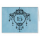 Tarjeta de número de tabla de candelabro azul vint