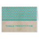 Moderna con un toque vintage es esta tarjeta de número de tabla de Chevron de Moda. Este diseño presenta un fondo de papel antiguo y un patrón de chevron zigzag en turquesa. Fácil de personalizar, simplemente agregue los números de tabla correspondientes. Haga clic en "Personalizar" para encontrar más opciones de personalización.