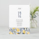 Esta tarjeta numérica aporta un toque elegante y refrescante a cualquier mesa boda, con un bonito diseño de cítricos y olivos de inspiración mediterránea en un fondo de azulejos azules y blancos. La parte superior de la tarjeta está simplemente adornada con la palabra "Tabla" en un guión elegante, seguido de un número grande y negrita que destaca por una fácil visibilidad. A continuación, los nombres de los invitados que se han designado en la mesa aparecen en una letra limpia y legible. Esta tarjeta complementaría con mucho gusto una temática boda vibrante y llena de vida, que repite las soleadas costas de Italia o el campo griego.