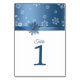 Tarjeta de número de tabla de copos de nieve azul y blanco boda de invierno. Boda de Invierno Copos de nieve tarjetas de número de tabla temática.