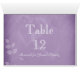 Hermoso y elegante número de mesa boda púrpura vintage lugar diseño de tarjeta con viñas frondosas en la esquina inferior izquierda y un desvanecimiento de dos corazones entrelazados en el centro. El diseño tiene una textura falsa impresa para un aspecto de papel antiguo. Este mismo diseño viene en varias opciones de color ya hechas y puede ser personalizado para adaptarse a su propio esquema de color contactándome en Mshake5918@yahoo.com. El texto se puede personalizar fácilmente para cualquier ocasión boda, ducha de bebé, aniversario, graduación, dulce dieciséis, cumpleaños u otro evento fiesta. La tarjeta de número de tabla está diseñada para que se gire hacia afuera de manera que el diseño sea visible desde ambos lados. También puede añadir nombres de invitados u otra información sobre asientos usando el menú "Personalizar".
