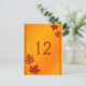 El número de la tabla de este otoño deja boda o tarjeta especial para la ocasión se puede cambiar usando la opción de personalización. Simplemente cambie el número, establezca la cantidad en uno, agréguela a su carrito y repita el proceso hasta que obtenga todas las tarjetas de tabla que necesite en su carrito. Para realizar cambios más extensos en la tarjeta, incluyendo el cambio de tipo de letra, tamaño de fuente, color de fuente o color de fondo, utilice la opción "personalizar it". Esta tarjeta de mesa es una excelente opción para una boda de otoño, fiesta de aniversario o cualquier otra celebración de otoño que necesite para la que necesite tarjetas de mesa. Los colores son naranja, burdeos y oro de cosecha.