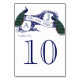 Tarjeta de número de tabla del Boda de pavo real a