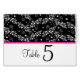 Tarjeta de número de tabla floral blanca y negra r