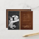 Esta preciosa tarjeta boda marrón, con un texto dorado cremoso, tiene un estilo vintage y anticuado con el diseño de cartas antiguas, con detalles de escritura, una pancarta decorativa, estrellas y una ampersand veloz. El diseño elegante está inspirado en el diseño vintage y en posters elegantes. Personalizar con sus propios nombres, fotos de compromiso y citas para que los clientes se queden mirando y disfrutando de su decoración boda. Esta suite de invitados es perfecta para aquellos que busquen invitaciones caseras extravagantes, históricas, vintage o únicas en recepción.