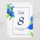 Tarjeta de números de mesa con flores silvestres de acuarela azul de moda. Opción elegante para bodas de verano. Parte de una colección de bodas.