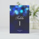 Tarjeta de números de mesa de boda con cielo azul de medianoche Bokeh