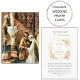 Tarjeta de oración de boda católica romana con corona de flores doradas y marfil con una llamativa ilustración del matrimonio entre San José y la Virgen María. Qué detalle tan elegante para regalar a los invitados de la boda, así como un compromiso de oración matrimonial de por vida.
