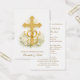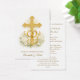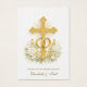 Celebre el Sacramento del Santo Matrimonio con esta elegante tarjeta de oración de boda católica. Con una radiante cruz dorada entrelazada con anillos de boda y florituras ornamentadas acentuadas con rosas blancas. La parte frontal dice "Unidos en el Corazón de Jesús" sobre los nombres de la novia y el novio. En el interior, una reverente bendición nupcial invoca la gracia de Dios y la intercesión de la Santísima Virgen María. Un hermoso recuerdo para el día de la boda, perfecto para invitados católicos, favores de oración o devocional de novia.