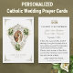 Con una hermosa imagen católica tradicional de la desposada de María y José con los corazones de Jesús, María y José en oro en la parte posterior. También hay una oración en la parte trasera para los novios. Todo el texto y las fuentes se pueden modificar.
