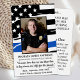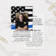 Delgada tarjeta de oración conmemorativa de la policía de la Línea Azul en un moderno diseño de la bandera estadounidense con los colores de la bandera de la policía. Personalice esta tarjeta de oración de la policía con la foto, departamento, nombre y fecha de su oficial de policía. Perfecto para que los departamentos de policía honren a un oficial caído, y los conservadores de los monumentos de las fuerzas del orden. Front Quote "El amor mayor no tiene a nadie más que esto: dejar la vida propia a sus amigos". John 15:13 ~ Cita posterior "Un héroe es...alguien que ha dado su vida a algo más grande que uno mismo" y la oración "Te mantenemos cerca". Por favor, contacta si quieres una oración personalizado. DERECHOS RESERVADOS © 2020 Judy Burrows, Black Dog Art - Todos los derechos reservados. Tarjeta de Oración del Funcionario de Policía Héroe Memorial