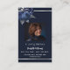 Un fondo azul oscuro, un marco falso plateado y espacio para tu foto. Decorado con flores azules. Personalice y agregue el nombre, las fechas y el texto.