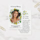 Sencillas tarjetas de oración funerales de simpatía floral de margarita. Esta moderna y elegante tarjeta de plegarias conmemorativas incluye flores de margarita en un diseño blanco. Front "In Loving Memory" Personaliza esta tarjeta de oración funeraria con fotos, nombres y fechas de sus seres queridos y sentimientos. Volver ~ Poema 'Que siempre camines en sol', que puede ser personalizado, por favor, contacte si quiere un diseño con un poema específico distinto a. Esta tarjeta de oración conmemorativa será un tesoro agudo, para los servicios funerarios y la celebración de la vida. DERECHOS RESERVADOS © 2020 Judy Burrows, Black Dog Art - Todos los derechos reservados. Tarjeta de oración funeraria floral conmemorativa Daisy Photo Funeral