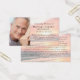 Esta tarjeta de oración conmemorativa tiene como fondo una puesta de sol sobre el océano. El frente tiene espacio para una fotografía y las palabras En memoria amorosa de junto con el nombre de tu ser querido, fechas y palabras de amor. Una en la parte trasera puedes añadir una oración o un poema de tu elección.