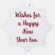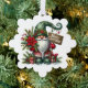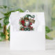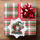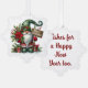 Una imagen de un gnomo sosteniendo flores y un cartel que dice "Feliz Navidad" , aparece en esta tarjeta de adorno de papel. Gnome está en la parte delantera de la tarjeta de ornamento y la parte trasera de la tarjeta de ornamento dice: "Deseos de un feliz Año Nuevo también". ¡Una manera dulce de enviar a familia y amigos una tarjeta especial para Navidades! Incluye una cinta para colgar también.