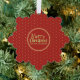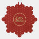 Feliz tarjeta de ornamento de papel de texto de personalizado navideño. Añade tu saludo personal a la parte posterior de la tarjeta de ornamento. Texto personalizado en la parte delantera y trasera. Ideal para los que buscan opciones no fotográficas. Colores rojos y dorados con acentos de copos de nieve. Utilice la plantilla para crear su propia tarjeta de ornamento de papel de Feliz Navidad de personalizado.