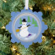 Tarjeta de ornamento - Hombre de nieve trabajando