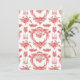 Una tarjeta de panel que presenta un toile rococó personalizado en rojo fresa sobre blanco. El reverso se deja en blanco para tus propias palabras o personalización