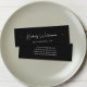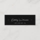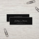 Elegante tarjeta de visualización de zócalo negro y correa con una apariencia minimalista que incluye tu nombre o marca mostrada en un guión de moda con firma blanca. Añada el texto adicional a continuación y la información de contacto en la parte posterior con letras blancas modernas y simples.