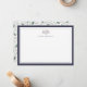 Nuestras elegantes tarjetas planas de papelería personalizada son perfectas para su correspondencia de la temporada navideña. Un diseño festivo pero elegante presenta un borde azul oscuro y una pequeña ramita de bayas de acebo en la parte superior, con su nombre, monograma o elección de personalización debajo. Las tarjetas se revierten a un patrón general de ramas de pino, hojas verdes y ramas de bayas.