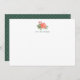 Nuestras elegantes tarjetas planas de papelería personalizada presentan un ramo de flores de peonía rojas navideñas y hojas verdes exuberantes en acuarela elegante, con su nombre o elección de personalización debajo en letra sans-serif moderna. Las tarjetas se revierten a un patrón de diamantes punteados sutiles en rico verde cazador navideño.