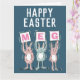 Tarjeta de Pascua para alguien con un nombre de 3 letras. Divertida tarjeta de Pascua con ilustración de conejos en rosa y azul. Los conejos sostienen tarjetas para deletrear el nombre.