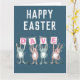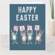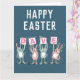 Tarjeta de Pascua para alguien con un nombre de 4 letras. Divertida tarjeta de Pascua con ilustración de conejos en rosa y azul. Los conejos sostienen tarjetas para deletrear el nombre.