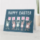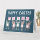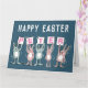 Tarjeta de Pascua para alguien con un nombre de 5 letras. Divertida tarjeta de Pascua con ilustración de conejos en rosa y azul. Los conejos sostienen tarjetas para deletrear el nombre.