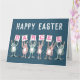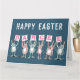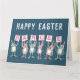 Tarjeta de Pascua para alguien con un nombre de 6 letras. Divertida tarjeta de Pascua con ilustración de conejos en rosa y azul. Los conejos sostienen tarjetas para deletrear el nombre.