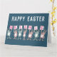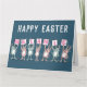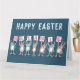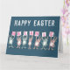Tarjeta de Pascua para alguien con un nombre de 7 letras. Divertida tarjeta de Pascua con ilustración de conejos en rosa y azul. Los conejos sostienen tarjetas para deletrear el nombre.