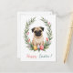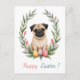 Difunde alegría en estas brillantes vacaciones con nuestra tarjeta de Pascua con un lindo pug rodeado por un delicado arreglo de Pascua en tonos pastel. Esta tarjeta es perfecta para los saludos de Pascua, añadiendo calidez y calidez a sus deseos. Los colores claros pero suaves crean una atmósfera de alegría y amor, y el encantador pug sin duda traerá una sonrisa a la cara del destinatario. ¡Escriba sus sentidos saludos dentro y haga que esta festividad sea aún más especial! Perfecto para amigos y familia, esta tarjeta será una maravillosa incorporación a sus saludos de Pascua.
