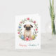 Difunde alegría en este brillante día festivo con nuestra tarjeta de Pascua que presenta un lindo pug rodeado de un delicado arreglo de Pascua en tonos pastel. Esta tarjeta es perfecta para saludos de Pascua, agregando calidez y acogimiento a tus deseos.