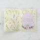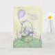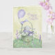 Lilas y verdes pálidos, flores, cesta de huevos y el conejo más lindo! Una hermosa tarjeta de Pascua para cualquiera!