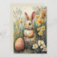 Cuta Tarjeta De Pascua Bunny Ilustrada. Celebra la alegría de la primavera con esta hermosa tarjeta de vacaciones ilustrada de un conejito suave rodeado de flores silvestres, sentado al lado de un huevo floral de Pascua. Ideal para darle un toque de calidez de temporada. DM si desea este diseño en otros productos.