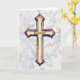 Mi obra de arte digital diseñada originalmente aparece en esta bonita tarjeta, que consiste en un fondo floral vintage con una cruz vintage ilustrada en oro claro en el frente. La palabra '¡Regocijaos!' está en el frente de la cruz y en el interior de la tarjeta hay un versículo de la Biblia de Romanos 5:8 a la izquierda y a la derecha las palabras "¡Que este día especial sea un testimonio del amor de Dios y de su gloria! ¡Feliz Pascua!" para una bonita tarjeta de Pascua con fe y corazón.