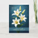 Este elegante diseño religioso presenta elegantes lirios blancos dispuestos sobre un fondo azul rico que resalta los delicados pétalos y los cálidos centros dorados de las flores. Los lirios clásicos simbolizan pureza, renovación y vida nueva, lo que los hace especialmente significativos para celebrar la entrada de una persona en la Iglesia Católica a través del camino del RCIA o OCIA. El mensaje de un patrocinador expresa aliento y alegría mientras el destinatario completa este importante paso en su vida de fe. La refinada obra de arte floral y la paleta de colores pacíficos crean un saludo reflexivo y edificante para dar la bienvenida a alguien en la Iglesia Católica.